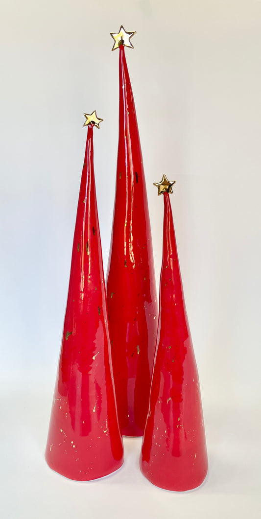 Ceramic Trees Red with 22k Gold Splatter Trios #6 (14-21 inches)
